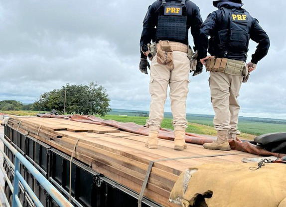 A Polícia Rodoviária Federal apreendeu, ontem, uma carga de madeira sendo transportada ilegalmente na BR-163, em Sorriso. Durante fiscalização, os policiais constataram que a documentação apresentada pelo motorista era falsa.