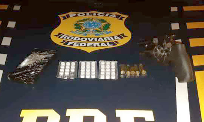 O veículo era conduzido por um homem, de 33 anos, e durante a verificação na cabine do caminhão, os policiais encontraram um revólver calibre 38 que estava em uma meia branca, ao lado do banco do motorista. A arma estava com cinco munições.