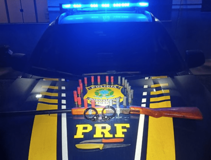 Um homem foi preso por porte ilegal de arma de fogo e embriaguez ao volante, ontem à noite, após se envolver em um acidente na BR-163. A Polícia Rodoviária Federal esteve no local e constatou que o condutor do veículo Fiat Strada Working havia se evadido do local antes da chegada da equipe.