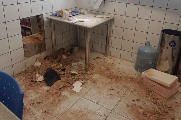 Dentro da agência também havia uma parede que dá acesso à sala de monitoramento da agência arrombada. Os bandidos desligaram o sistema de vigilância e roubaram o HD de um dos computadores. A quadrilha não conseguiu violar o cofre central e fugiu sem levar nada.