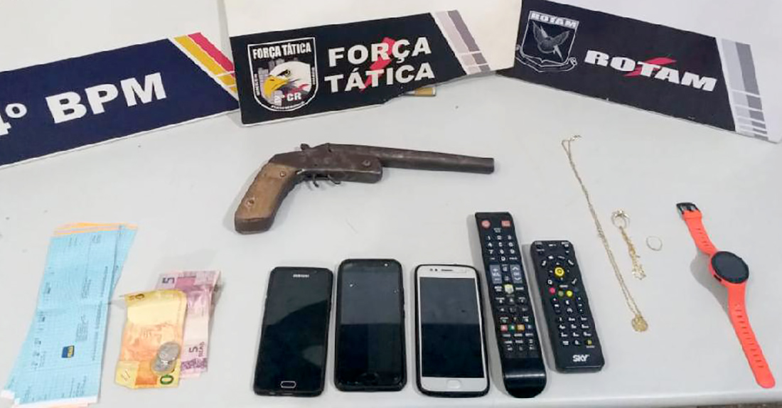 Ainda de acordo com a assessoria, ele carregava uma arma de fogo artesanal.Um adolescente, de 16 anos, foi pego na ação. Ele estava em outro cômodo, foi imobilizado e apreendido.
