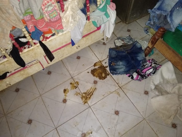 Segundo o documento policial, também foi constatado que o imóvel apresentava gotejamento no telhado, piso molhado, sujo, fezes espalhadas pelo chão, colchões totalmente sujos e molhados, panelas com comidas estragadas com condições insalubres de moradia.