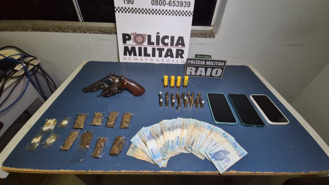 Dentro do imóvel, os policiais localizaram um revólver de calibre .38 e 50 munições de diversos calibres. Também foram apreendidas porções de maconha e haxixe. Todos os três suspeitos receberam voz de prisão em flagrante e um deles foi identificado com passagens criminais por homicídio e tráfico de drogas.