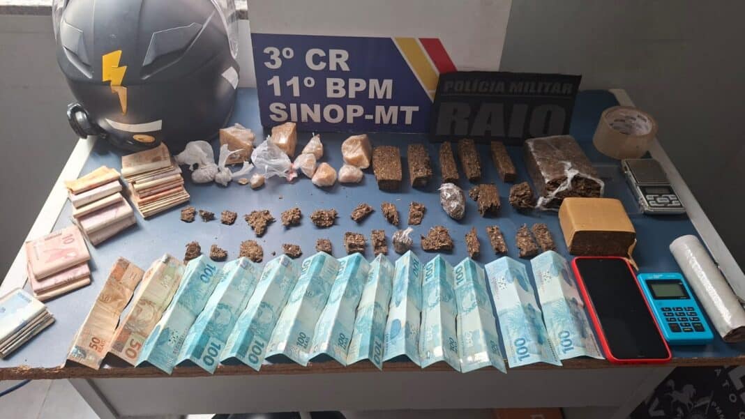 O rapaz de 18 anos foi preso hoje, pela equipe Raio da Polícia Militar, no bairro Jardim Imperial, após denúncias indicando que ele estaria fazendo entregas de entorpecentes em uma motocicleta durante a manhã. Foram apreendidos uma motocicleta Yamaha YBR, R$ 3,3 mil em dinheiro, 35 porções de maconha e 11 porções de pasta base de cocaína.