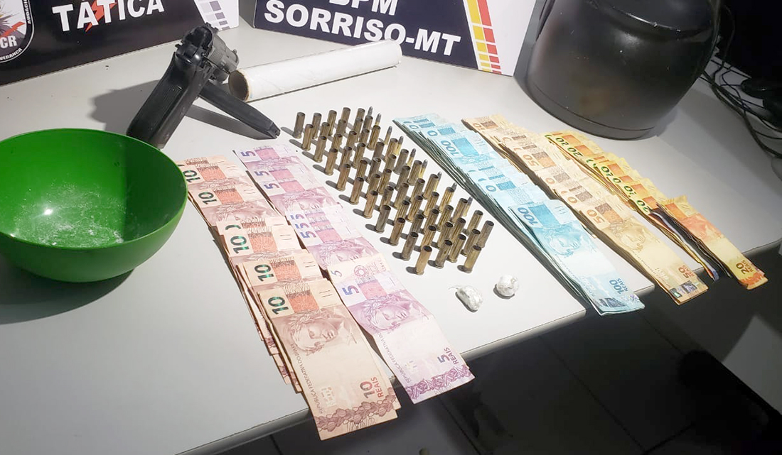Segundo o boletim de ocorrência, houve denúncia relatando que em duas residências, no bairro Jardim Primaveras, haveria venda de entorpecentes e que os suspeitos estariam com armas de fogo para fazer a segurança do local.