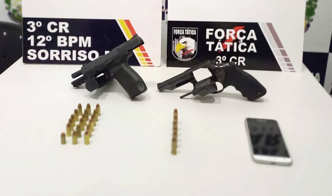 Dois condutores de Honda Fan preta, de 20 e 30 anos, foram detidos por policiais militares da Força Tática, hoje de madrugada, acusados por porte ilegal de arma de fogo e formação de quadrilha, durante abordagem na zona leste de Sorriso.