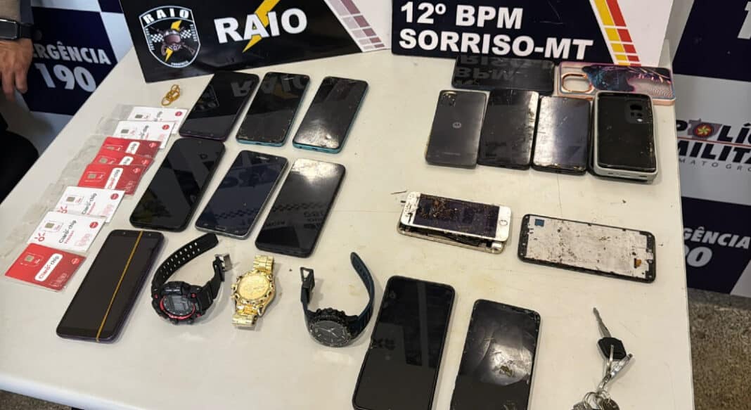 Um adolescente e dois homens adultos (de idades não informadas) foram presos pela Polícia Militar, hoje à tarde, acusados de furtarem celulares, relógios e dinheiro de uma empresa de assistência técnica da avenida Tancredo Neves, região central, hoje de madrugada. Foram recuperados parte dos produtos furtados. O proprietário estimou que o valor total do furto era de R$ 20 mil.