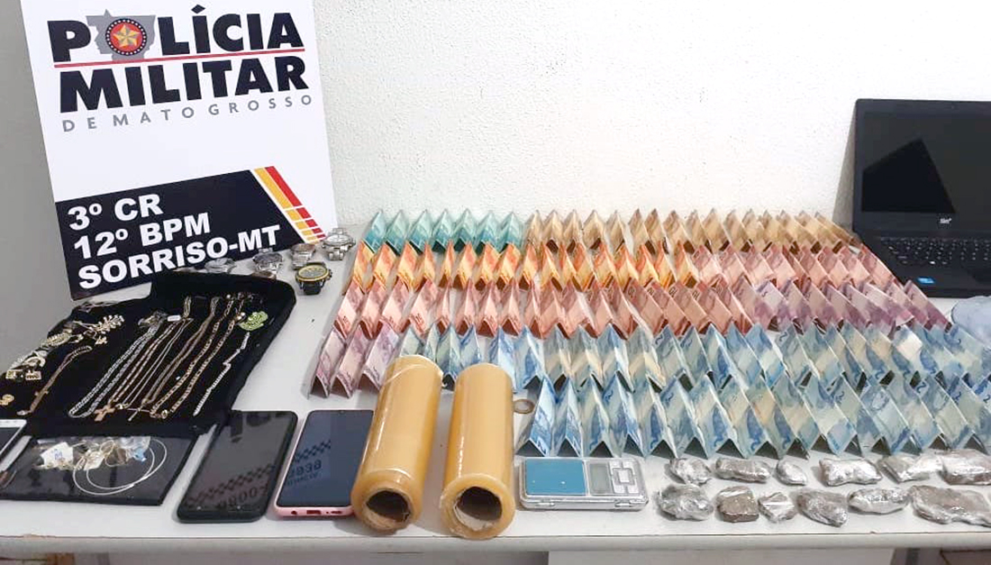 No imóvel foram apreendidos 11 porções de maconha, quatro de cocaína, duas de pasta base de cocaína, balança de precisão, além de R$ 2,5 mil. No local os militares também apreenderam sete relógios, diversas semijoias, três celulares e um notebook, que havia sido receptado de um usuário de drogas, segundo o suspeito.