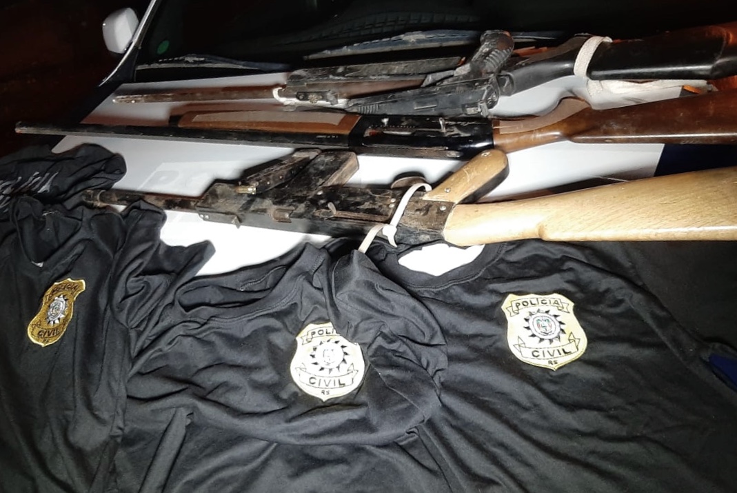 Em seguida, ele foi até uma residência onde estavam uma mulher, que alega ser moradora de Sinop, e outro homem que reside em Sorriso. Foram apreendidos camisetas falsificadas que seriam policiais civis no Estado no Rio Grande do Sul e uma “língua de sogra” usada para amarrar pessoas, além de camisetas que os criminosos usariam e se passariam por policiais.
