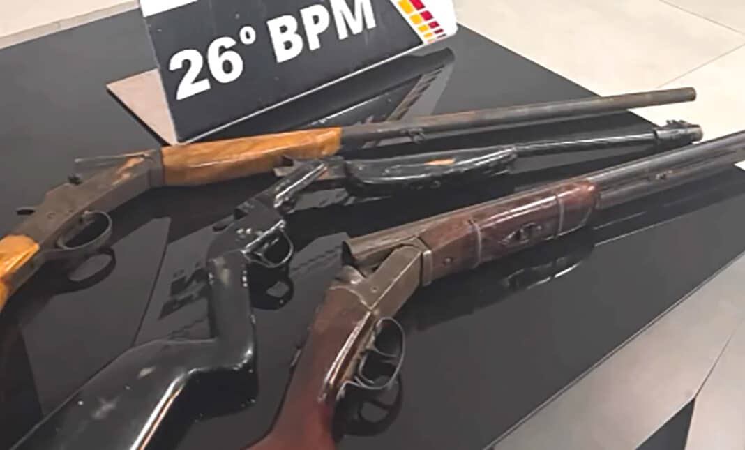 As equipes de patrulhamento rural da Polícia Militar prenderam o homem, ontem à tarde, ao ser denunciado por posse ilegal de arma de fogo, na comunidade Pontal do Marapé, a cerca de 160 quilômetros do perímetro urbano de Nova Mutum. Com ele foram apreendidas três espingardas, de calibres 28 e 22.