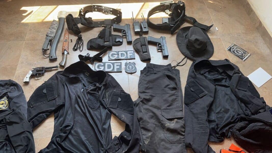 Investigadores de Polícia Civil entraram em confronto, há pouco, com um dos suspeitos de envolvimento no sequestro e execução de um homem, no último domingo. Com o criminoso, foram encontrados uniformes iguais aos usados pela polícia e agentes de segurança, duas pistolas, revólver, fações, rádios comunicadores, entre outros. O suspeito foi baleado durante a troca de tiros e socorrido, sendo atendido no hospital regional.