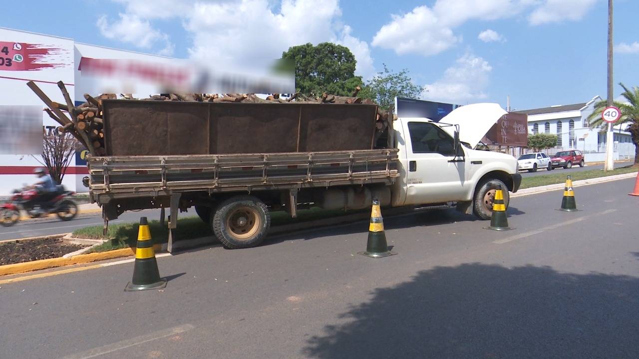 Ao receber as informações, a PM iniciou as diligências, e visualizou o caminhão ainda na avenida. Ao se aproximar, o suspeito subiu no canteiro central, e tentou fugir a pé, mas foi abordado.