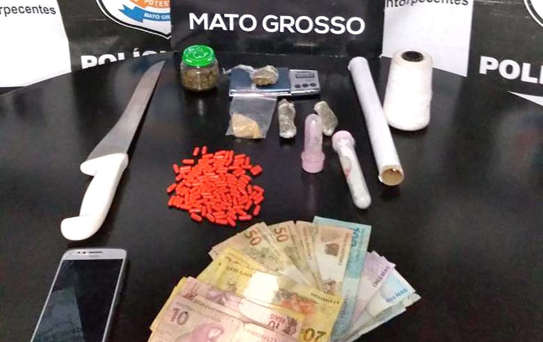 Dois homens e uma jovem foram presos, em Cuiabá, com 115 comprimidos de ecstasy, drogas e dinheiro. Policiais da Delegacia Especializada de Repressão a Entorpecentes (DRE) localizaram os suspeitos, todos de 20 anos, em uma residência no bairro Jardim Imperial. Um motociclista chegou em frente do imóvel, rapidamente outra pessoa saiu da casa e entregou algo para ele, que imediatamente foi embora. A jovem percebeu a presença dos policiais civis e os autorizou entrar.
