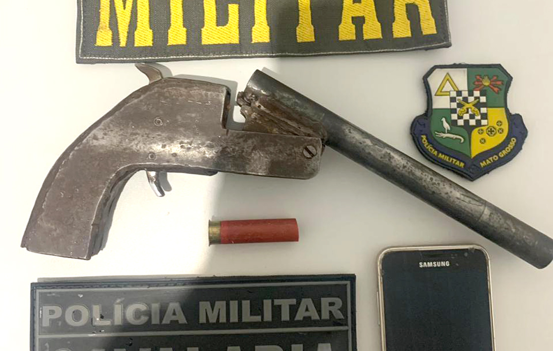 Três homens, de 23, 24 e 29 anos, foram presos, ontem à noite, com um rifle calibre 22, com quatro munições e uma garrucha de dois canos, na avenida André Maggi, no bairro Jardim Violetas. Os suspeitos estavam em um carro e quando notaram a presença da viatura tentaram despistar os policiais, porém, foram abordados.