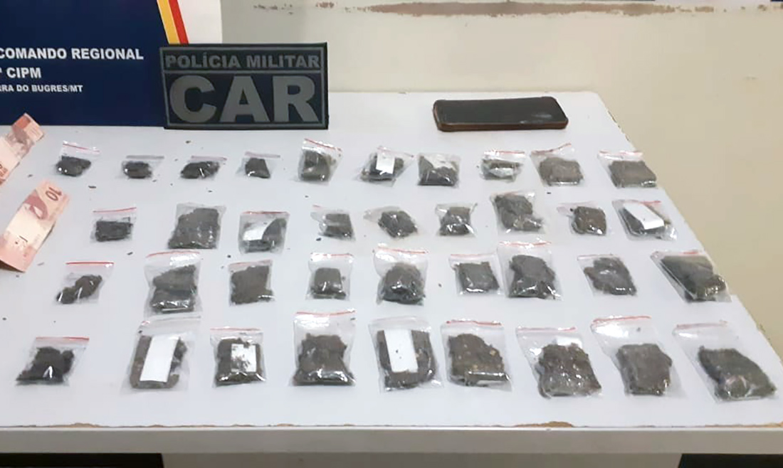 A Polícia Militar confirmou, há pouco, ao Só Notícias, que uma mulher foi presa em flagrante, na residência dela vendendo drogas em Barra do Bugres (165 quilômetros ao Médio Norte de Cuiabá), ontem. Com ela, foram apreendidas 37 porções de maconha prontas para a venda e dinheiro.