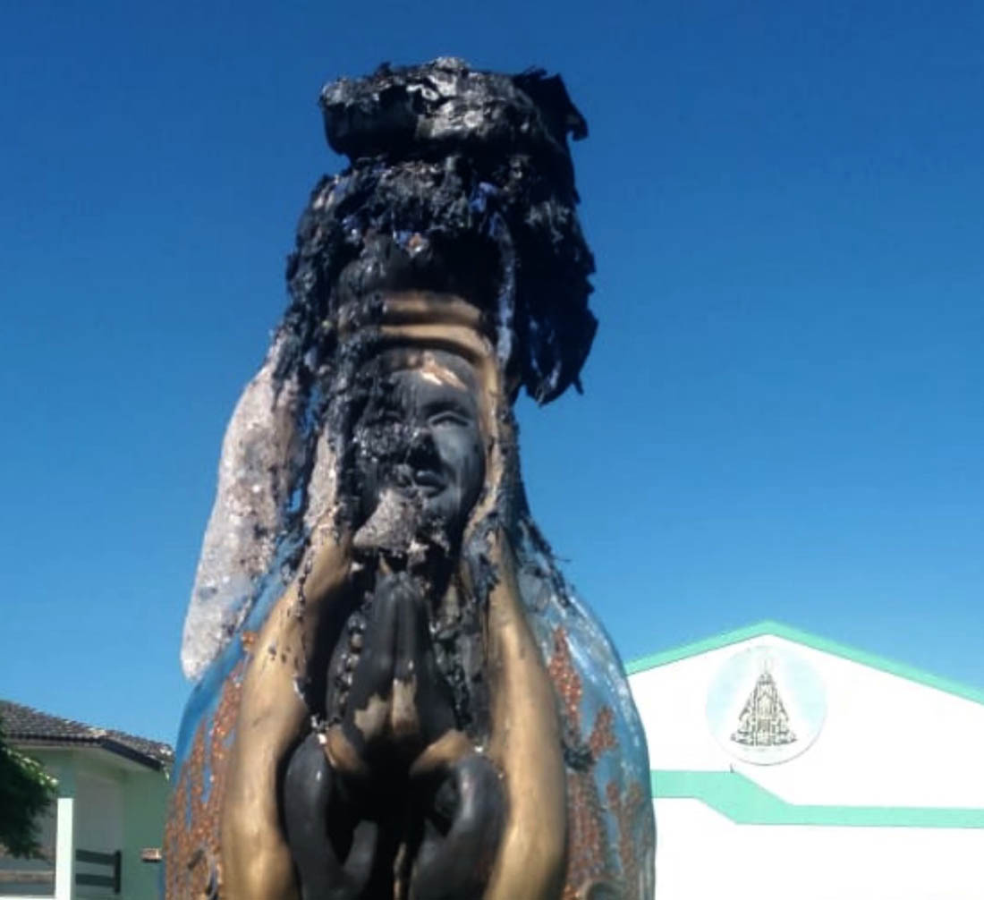 Vândalos ateiam fogo em imagem de santa no Nortão