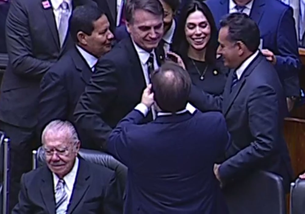 Na solenidade, Bolsonaro também recebeu cumprimentos do deputado mato-grossense Nilson Leitão, líder do PSDB na Câmara dos Deputados.
