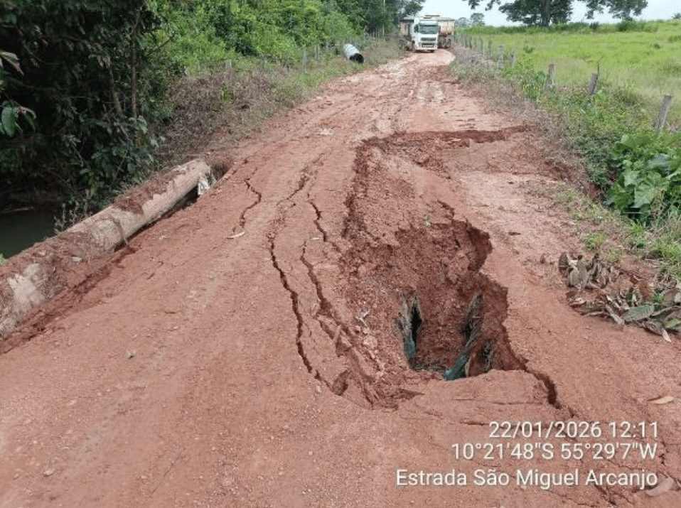 O impacto atinge diretamente cerca de 6 mil moradores da zona rural. Na área da educação, há risco de suspensão do transporte escolar em trechos considerados inseguros. Na saúde, equipes enfrentam dificuldades para chegar às unidades e realizar atendimentos domiciliares. Já na agricultura, principal base econômica local, o escoamento da produção de grãos e o transporte de gado foram prejudicados, justamente em período de colheita, quando o tráfego de veículos pesados aumenta.
