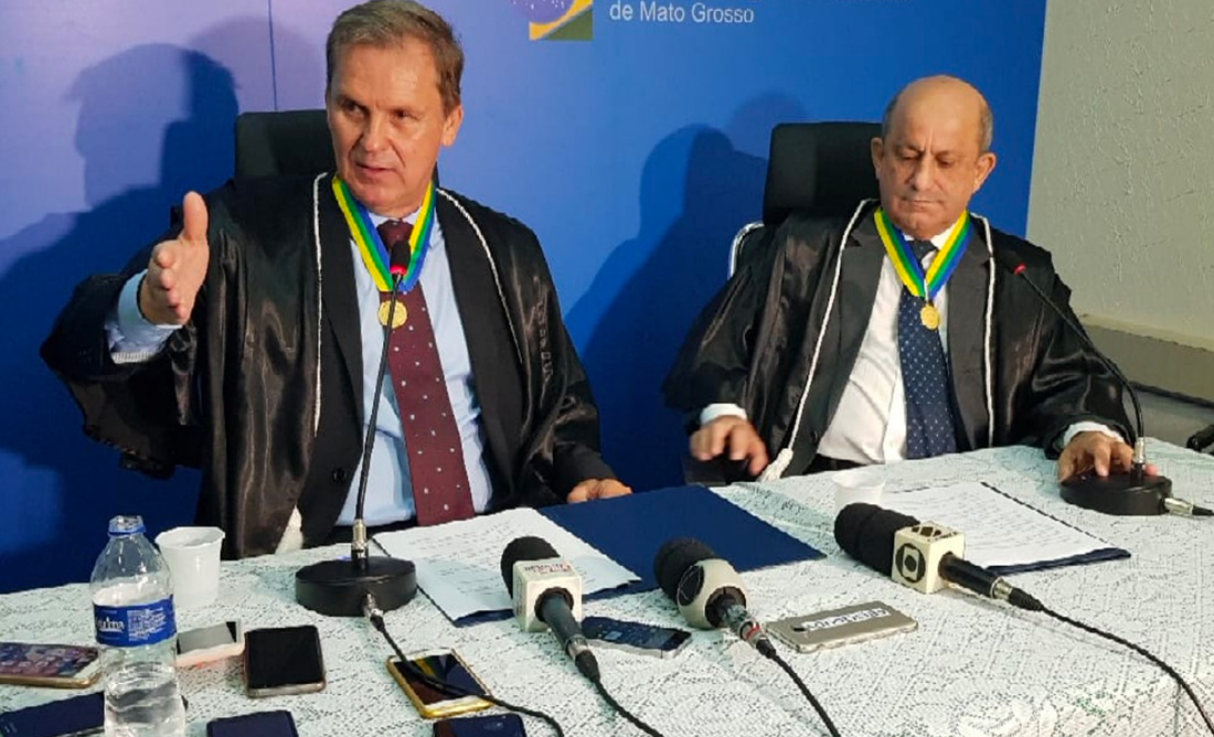 Os magistrados que compõem o pleno do Tribunal Regional Eleitoral de Mato Grosso acabam de eleger presidente, por aclamação, o desembargador Gilberto Giraldelli presidente. Ele presidirá a corte até 2021. O desembargador Sebastião Farias é o vice-presidente. Ele disse que um dos principais objetivos é chegar nas eleições do ano que vem com o cadastramento biométrico feito em todos municípios. 81 ainda não iniciaram.