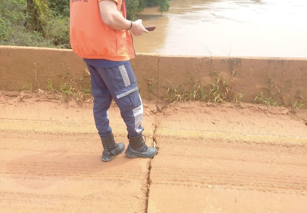 O coordenador de Defesa Civil, Alberto dos Santos, detalhou as análises da equipe sobre a ponte do bairro Jardim Carolina, que vem preocupando moradores. A estrutura teve o guard-rail danificado e apresenta rachaduras no concreto, além de danos na sustentação, porém, o coordenador afirmou não haver maiores riscos.