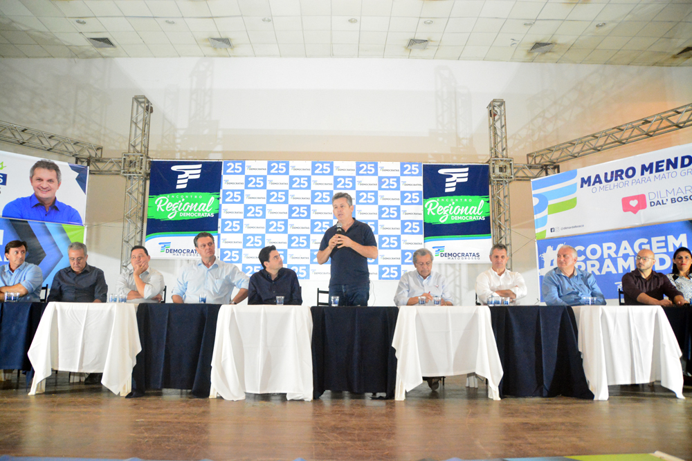 O Democratas fez, ontem à noite, em Sinop, o primeiro encontro regional no Nortão, com os pré-candidatos a governador Mauro Mendes. Ele confirmou que o DEM está fechado com o PSD e a segunda vaga de candidato a senador é de Carlos Favaro, ex-vice-governador. Mauro disse que é esperada definição de algumas candidaturas dos partidos que devem estar coligados mas a previsão é de 32 candidatos a deputado federal e mais de 100 a estadual.