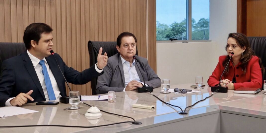 Os deputados estaduais Thiago Silva (MDB), Nininho (PSD), Sebastião Rezende (UB) e Claudio (PL) convocaram, hoje, a secretária estadual de Meio Ambiente (Sema), Mauren Lazzaretti, para cobrar a suspensão da licença de instalação emitida pela pasta à empresa Rumo para alterar o traçado da ferrovia estadual ligando Rondonópolis a Cuiabá, Nova Mutum e Lucas do Rio Verde. Eles manifestaram os riscos e a preocupação com moradores dos bairros Maria Amélia, Rosa Bororo e toda a região Salmén com o novo traçado que poderá passar a 40 metros de residências, em Rondonópolis, ocasionando impactos econômicos, sociais e ambientais.