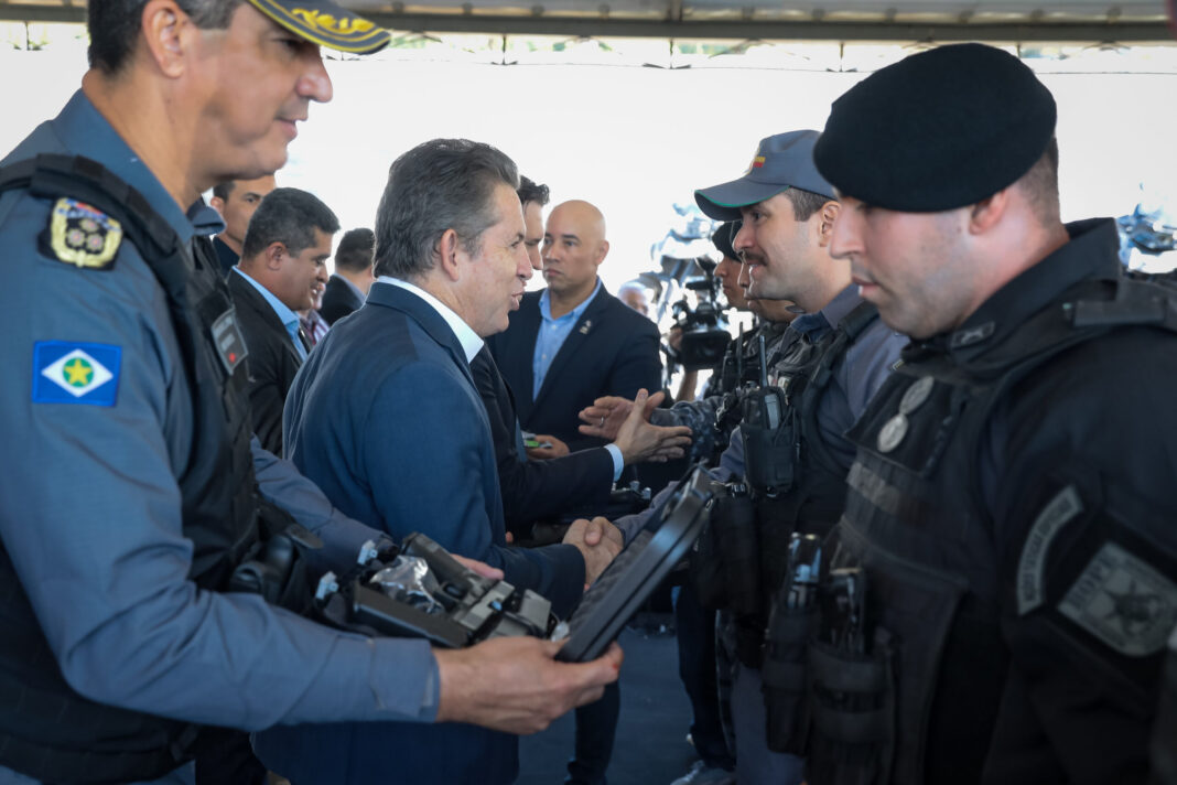 O governo de Mato Grosso entregou 2,6 mil pistolas para a Polícia Militar, em solenidade realizada, hoje, na Praça das Bandeiras, em Cuiabá. As novas armas, que reforçarão as unidades de Cuiabá e Várzea Grande, são pistolas de calibre .9mm glock. O investimento foi de R$ 5,7 milhões. “Finalizamos mais uma entrega, modernizando nossas estruturas, equipamentos e armamentos das nossas forças de segurança. Estamos aqui há quatro anos e são inúmeras as melhorias em diversas áreas, assim como na Segurança. Antigamente recebíamos pistolas doadas e hoje temos aquisições próprias, e podemos bater no peito e dizer que as forças de segurança de Mato Grosso são as mais equipadas do Brasil”, comemorou o governador Mauro Mendes.
