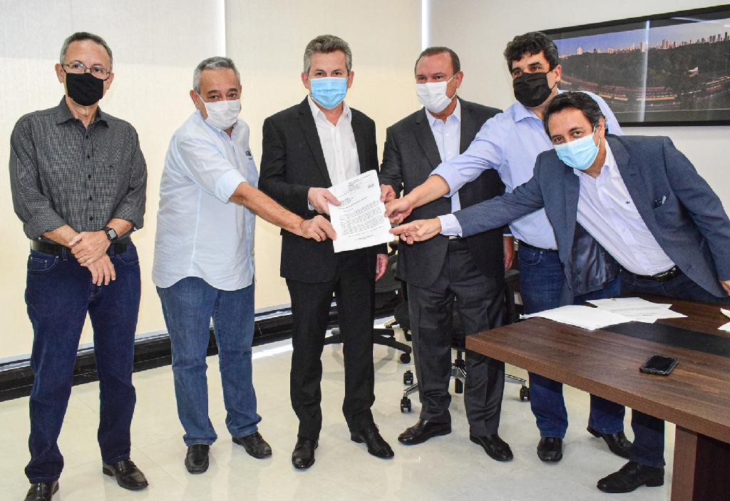 O governador Mauro Mendes (DEM) recebeu do superintendente do Departamento Nacional de Infraestrutura de Transportes (DNIT) em Mato Grosso, Orlando Fanaia, a autorização para a execução do primeiro lote de obras do projeto do Contorno Norte de Cuiabá e Várzea Grande, conhecido como Rodoanel, e já determinou a realização de novo processo licitatório à retomada da obra. O anúncio foi feito, esta tarde. O projeto que agora está dividido em dois lotes, prevê a implantação e pavimentação de 51,71 quilômetros, no trecho que vai do entroncamento da BR 070/163/364, em Cuiabá, até o entroncamento da BR-163/364, em Várzea Grande.