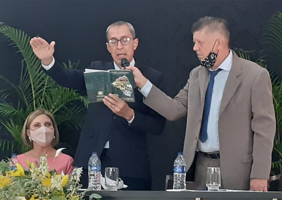 O prefeito Miguel Vaz (Cidadania) e o vice Márcio Pandolfi (PDT) foram empossados, há pouco, para comandar o município de Lucas do Rio Verde pelos próximos quatro anos. Devido ao Coronavírus, o evento foi na câmara de vereadores com transmissão ao vivo pela internet, e sem presença de público. A sessão foi comandada pelo vereador mais votado em novembro, Waldimir Mesquita (PRTB).