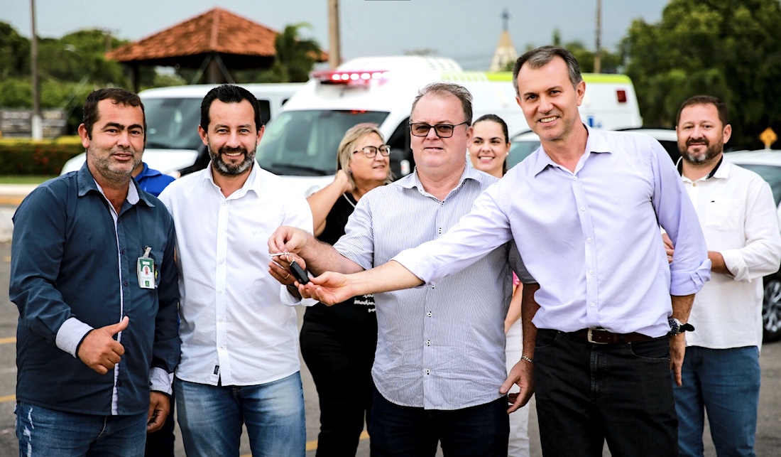 O prefeito Leandro Félix entregou, hoje, dois veículos SUV, cinco picapes e duas camionetes cabines duplas, dois caminhões e duas ambulâncias com investimentos de R$ 2,6 milhões feitos pela prefeitura. Também foram entregues três ônibus escolares repassados pelo governo do Estado. Os investimentos fazem parte do programa Mutum Mais e busca reforçar a frota e estrutura da prefeitura para atividades das secretarias.