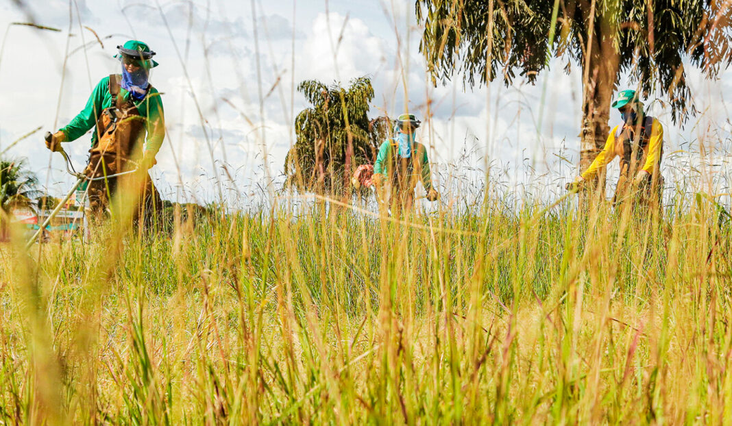 Consta, no edital, que as atividades deverão abranger processos de roçada com máquina costal, trator com roçadeira ou outro equipamento compatível para realização do serviço. Também está incluída a dessecagem química em toda a extensão do terreno após 15 (quinze) dias da limpeza geral e amontoamento dos resíduos recolhidos nos mais diversos tipos de terreno.