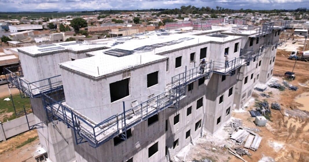 No Parque Amazonas II, também com 128 apartamentos, os trabalhos de montagem de formas, concretagem dos radiers e levantamento do muro estão em processo de execução, já a terraplanagem está em finalização, representando a evolução de 12% da construção, informa a assessoria.