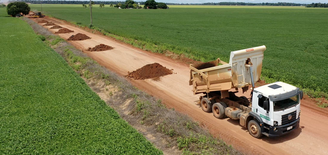 Em alguns pontos, como as estradas Edna e Ângela, foi feito o levantamento da estrada, que é quando está mais baixa que a lavoura. Por isso foram feitos valetões nas laterais, para impedir que a água se acumule no centro. O trabalho de cascalhamento e patrolamento dessas vias, que ligam propriedades rurais e servem de escoamento da produção, faz parte de um dos pilares da gestão.