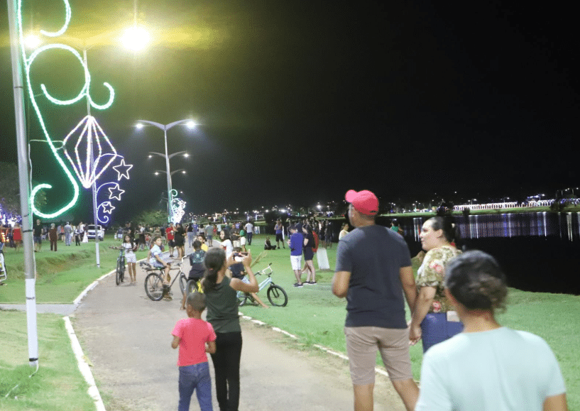 A prefeitura lançou, ontem à noite, o “Brilha Matupá” no complexo turístico dos lagos. Centenas de moradores acompanharam o momento em que são ligadas as luzes da decoração natalina. “O espírito natalino e o espírito da alegria estão aqui em Matupá a partir de agora”, celebrou o prefeito Bruno Mena, em uma rede social, anunciando que a “casa do Papai Noel” estará aberta de quinta a domingo, das 18h30 às 22h.