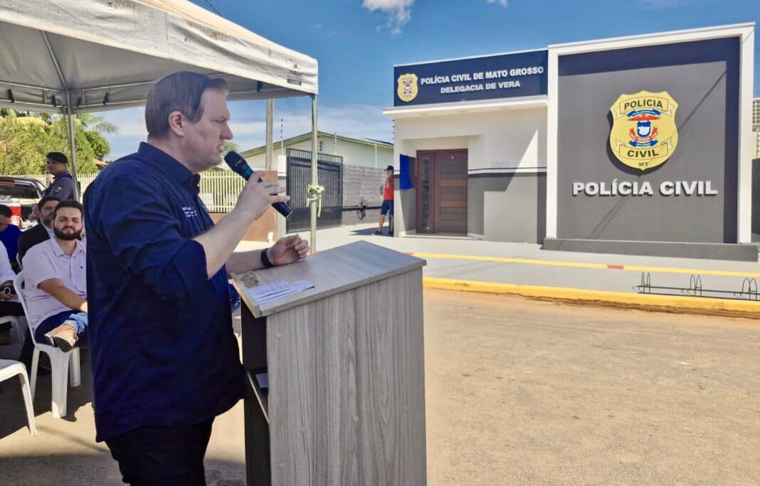 Foi inaugurada, nesta manhã, a sede reformada da delegacia de Polícia Civil de Vera (80 km de Sinop), localizada na rua Chile, região central, com o investimento estimado em R$ 460 mil. A solenidade contou com a presença do secretário estadual de Segurança Pública, César Roveri, e do prefeito Yago Giacomelli (MDB).