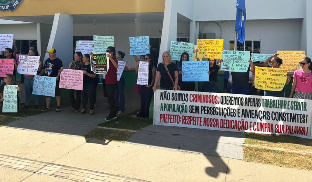 Candidatos aprovados no concurso público 001/2020 realizaram protesto em frente à prefeitura, no fim desta manhã, contra a anulação do certame. Os manifestantes também colocaram faixas, ontem, no plenário da câmara durante a sessão, com os dizeres: “prefeito: respeite nossa dedicação e cumpra sua palavra!” e “concurso 2020 é valido”. O Tribunal de Justiça está julgando a validade do concurso.