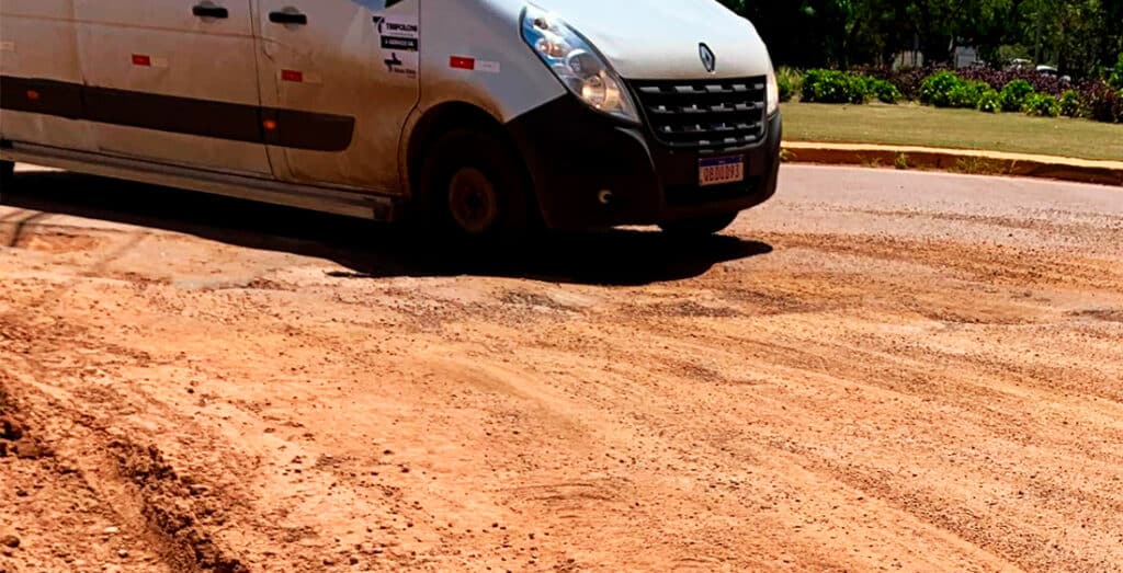 Em outros trechos foi feito tapa-buracos há poucos dias. Um deles é no cruzamento das avenidas das Embaúbas com Ingás na rotatória onde há movimento intenso na maior parte do dia. Outro ponto era na rua das Caviúnas, próximo à AABB, onde ontem foi recuperado.