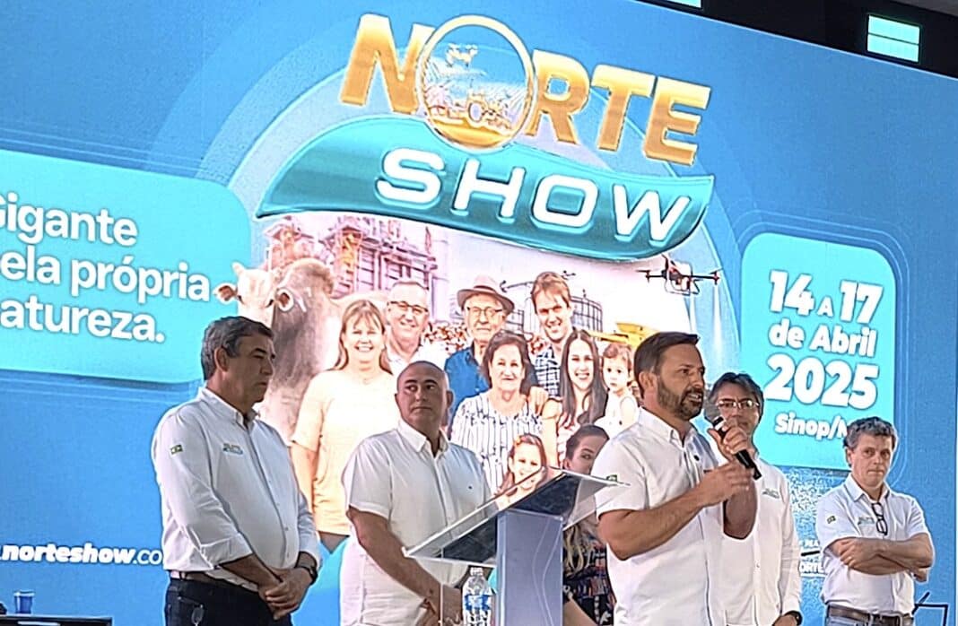 Foi lançada oficialmente, esta noite, a programação oficial da Norte Show, que será de 14 a 17 do mês que vem no parque de exposições em Sinop. Organizada pela Associação dos Criadores do Norte de Mato Grosso (Acrinorte) e Sindicato Rural de Sinop, a feira é considerada uma das principais vitrines do agro do Centro-Oeste e proporciona um considerável volume de negócios, difunde novas tecnologias na agricultura e pecuária. São esperados mais de 400 expositores (ano passado foram 350), cerca de 70 mil visitantes e R$ 4 bilhões em negócios.