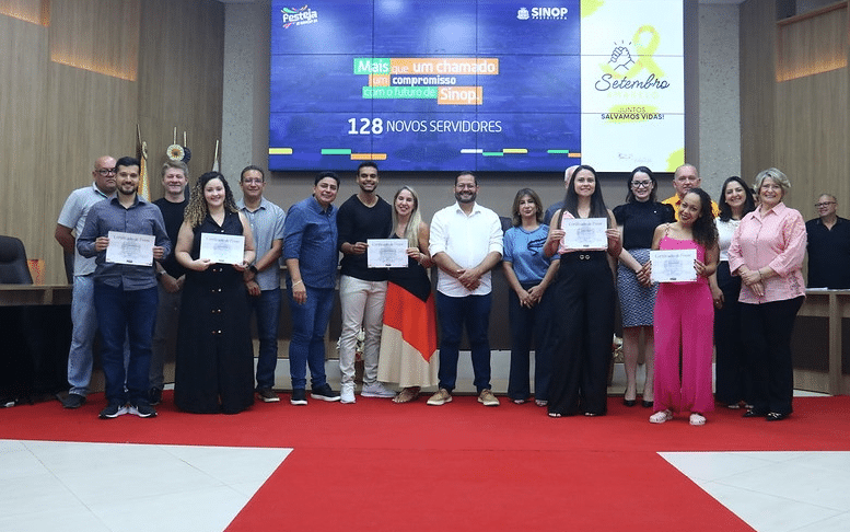 A prefeitura de Sinop concedeu, oficialmente, ontem, posse a 128 novos servidores municipais, aprovados no maior concurso público da história da cidade, nº 001/2024, e que atuarão em sete secretarias. O evento ocorreu no plenário da câmara de vereadores.