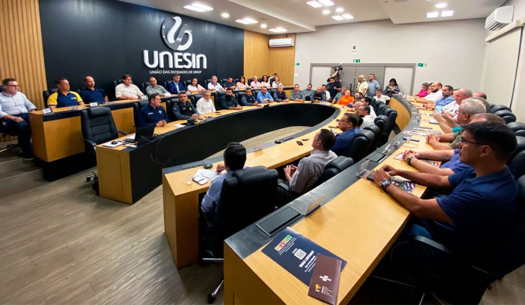 O secretário estadual de Segurança Pública, César Roveri, os deputado Juarez Costa (MDB) e Dilmar Dal Bosco (União), além de secretários municipais e dirigentes de entidades, participaram, ontem à noite, da 3ª assembleia geral da União da Entidades de Sinop (Unesin) e houve cobranças para reforçar a segurança na maior cidade do Nortão. “Tivemos algumas discussões, solicitações para o município, mas nós temos muitos avanços aqui para Sinop e região. Uma delas é o próprio Ciosp, que nós fizemos um convênio com a prefeitura, já depositamos o dinheiro na conta da prefeitura, a licitação está terminando para a gente poder iniciar as obras”, disse. A construção do Centro Integrado de Operações de Segurança Pública (Ciosp) em Sinop deve começar no segundo semestre, em área institucional no Setor industrial Norte, em frente ao parque de Exposições da Acrinorte, terá 412 metros quadrados, com sala de vídeomonitoramento, sala de crise/reunião, gerência, ala de apoio, secção técnica, refeitório área de meios (informática), alojamentos e demais setores.