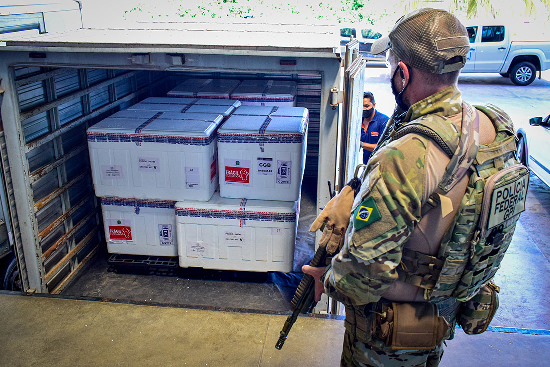 Após a distribuição dos imunizantes aos municípios, as vacinas deverão ser armazenadas conforme as condições estabelecidas pela fabricante e Agência Nacional de Vigilância Sanitária (Anvisa) e com o apoio da segurança pública.