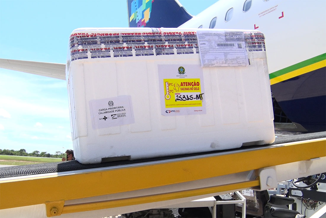 A nova remessa de 21 mil doses da vacina AstraZeneca chegou, hoje, no final da manhã, no aeroporto Marechal Rondon, em Várzea Grande, segundo dados confirmados pela secretaria de Estado de Saúde. De acordo com o Ministério da Saúde, a nova dose é para imunização dos grupos da primeira fase idosos com idade entre 80 e 89 anos) da campanha de vacinação contra a Covid-19.