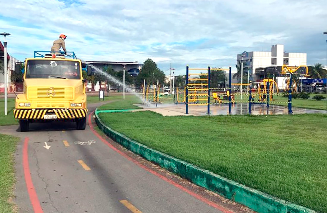 A prefeitura, bombeiros e uma empresa também já fizeram a desinfecção de academias ao ar livre, na pista de caminhada Unemat (centro), rotatórias das avenidas Itaúbas com Tarumãs, da avenidas Itaúbas com Jatobás (Jardim Celeste), praças da Bíblia (centro), Jardim das Oliveiras I, Residencial Daury Riva e Terra Rica, estádio Massami Uriu (Gigantão), além de cruzamentos em bairros e play grounds infantis.
