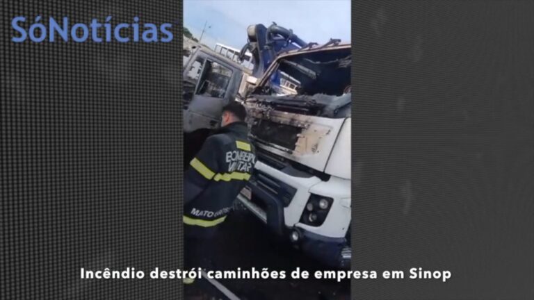 Incêndio destrói caminhões de empresa em Sinop; vídeo