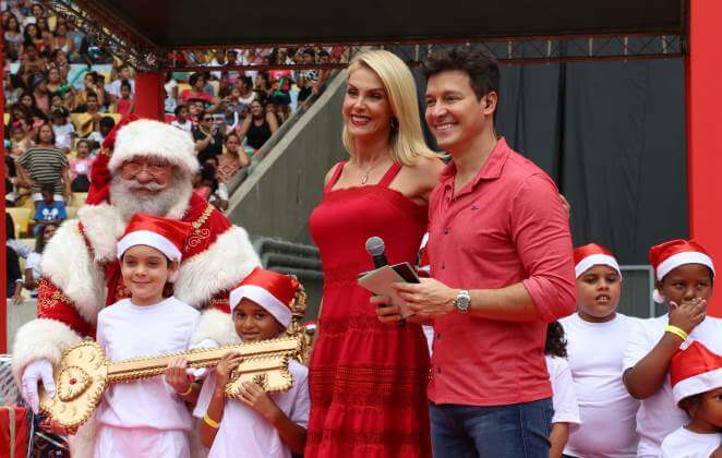 Rodrigo Faro e Ana Hickmann foram os escolhidos para apresentar o Natal Show de Bola, evento que foi realizado, na última segunda-feira (23), no Estádio do Maracanã, no Rio de Janeiro.