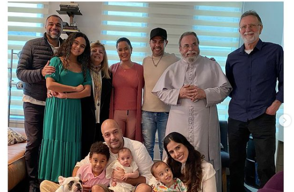 “Hoje foi um dia muito especial, batizado da minha Julia. Por conta da pandemia só vieram os padrinhos e os avós , mas foi mto especial, muito emocionante e abençoado. Faltou só a vovó @zilucamargooficial pra ficar completo mas ela realmente não tinha como vir. Obrigada ao padre @padreantoniomaria.original pela benção, aos padrinhos @lucieledicamargo e @denilsonshow pelo amor e por aceitarem serem espelhos pra Julia, aos primos Maria Eduarda e Davi , e aos avós maravilhosos @zezedicamargo @finitiz e @jorgemenezeslopes por tanto amor. #batizadojulia @leonardolessalopes ❤️”, escreveu na legenda a atriz.