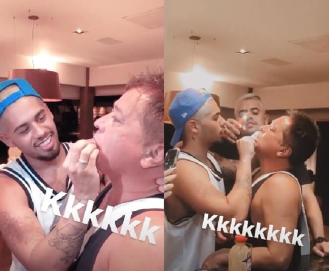 Zé Felipe, filho de Leonardo, ajudou o pai a tirar os espinhos, mas não deixou de se divertir com a situação, publicando tudo em seu Instagram Stories.