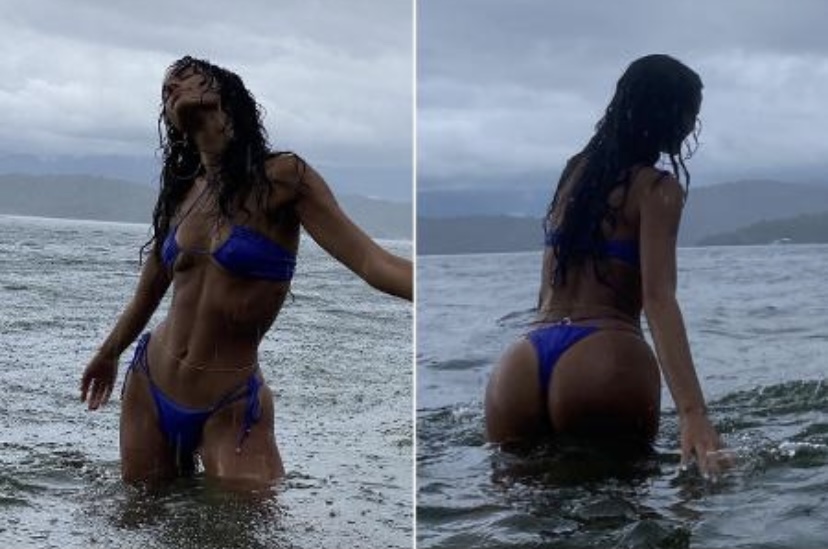 Mesmo com o tempo chuvoso, Bruna Marquezine, tomou um bom banho de mar e compartilhou fotos do mergulho, usando um biquíni azul. A influencer recebeu diversos elogios de fãs e famosos.