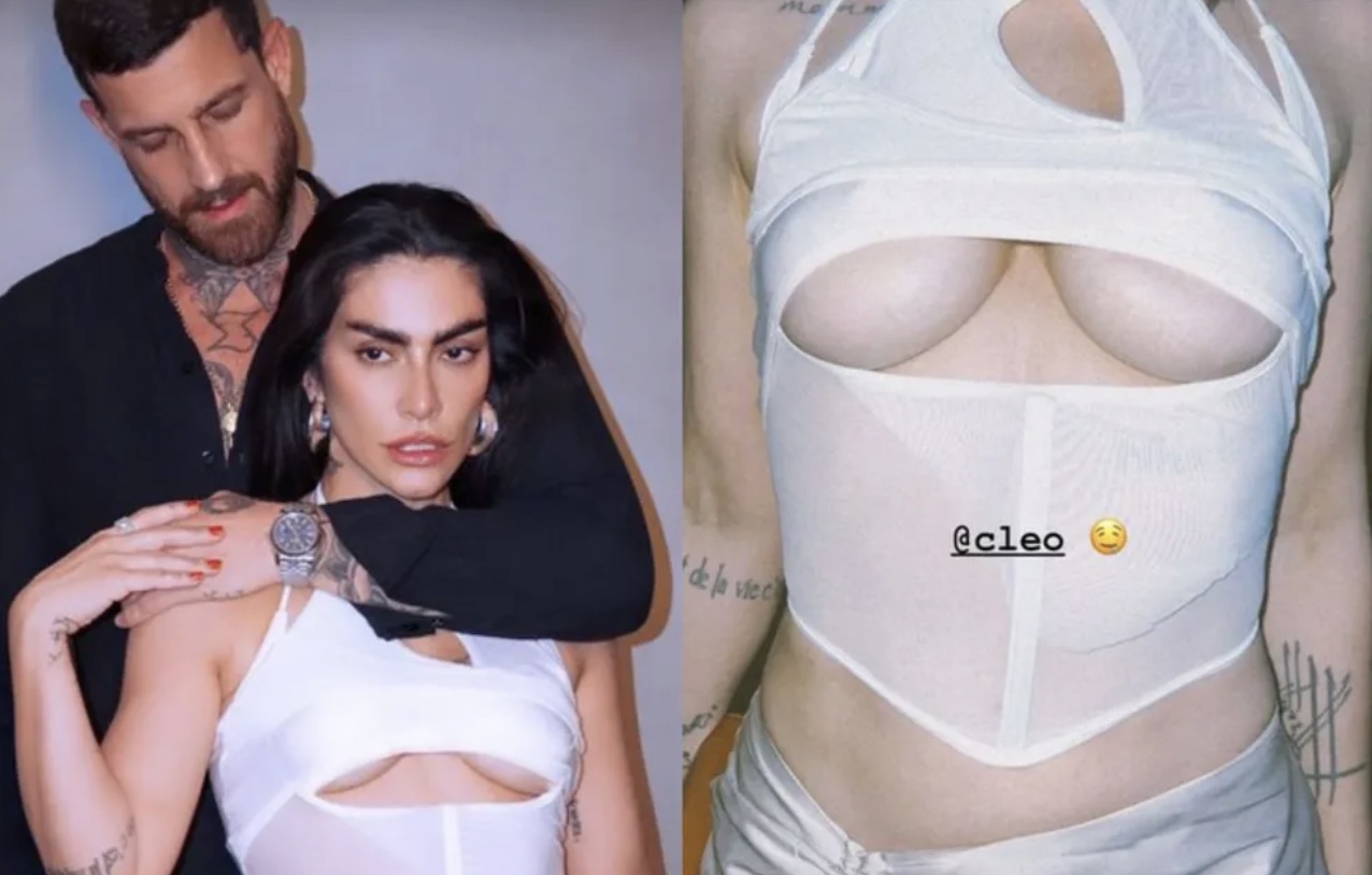 Pelas redes sociais, ela compartilhou uma foto ao lado do marido Leandro D’Lucca. O amigo Andre Nicolau também mostrou detalhes do look em redes sociais.