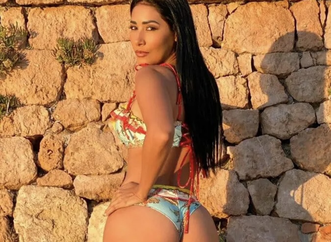 Na imagem em questão, a artista surgiu usando um biquíni florido cavado, enquanto destacava seu bumbum avantajado para o público.
